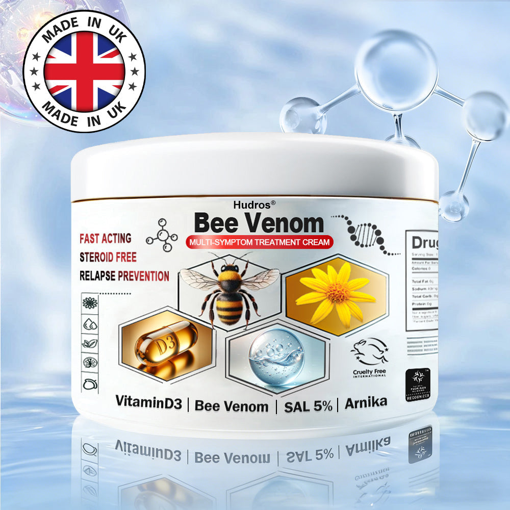𝑩𝒆𝒆 𝑽𝒆𝒏𝐨𝒎 is rich in bioactive compounds like melittin, apamin, and adolapin, which have been scientifically shown to reduce inflammation by inhibiting inflammatory pathways and improve blood circulation to affected areas, delivering nutrients vital for skin repair. Regular use of this cream can effectively soothe chronic skin conditions like eczema, psoriasis, and rosacea, promoting smoother, healthier skin naturally.
